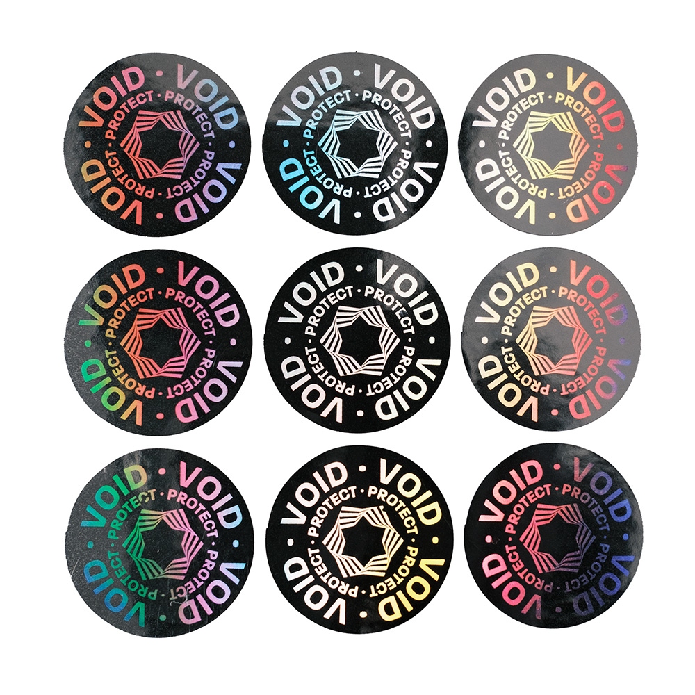 Holografická přelepka pro zajištění rozebíratelných částí výrobků proti neoprávněné manipulaci, přelepení kalibračních a seřizovacích mechanismů strojů atd. Po obvodu 4x slovo "VOID", ve středu šesticípá hvězda a kolem ní 4x slovo "protect"